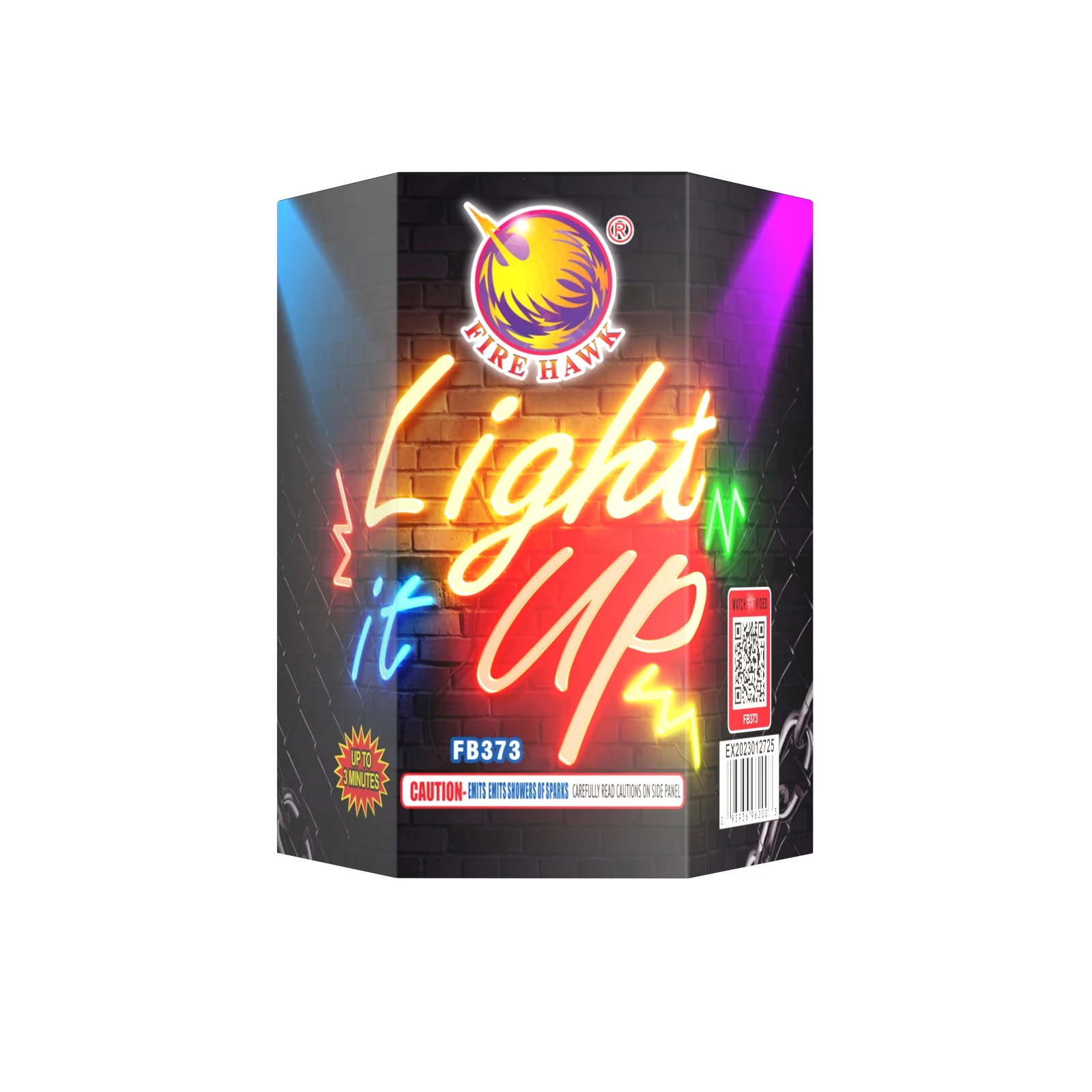 Ignite a sky of silver glitter, silver showers, and gold crackling with red and green stars, then yellow flowers with blue stars, silver showers, and white chrysanthemums. Light up silver glitter, silver showers, and green balls, then red and green stars, silver showers, and gold crackling. Ends with whistles.