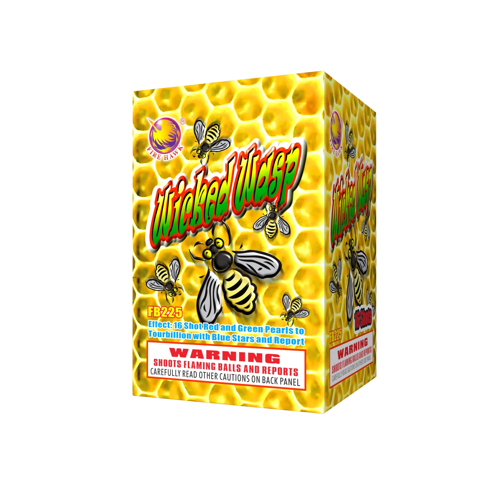Excessive crackling mines and whistling comet tails alternating with an extreme number of blue stars with silver glitter, and green glitter with red falling leaves. A four-shot finale of crackling stars. Overkill. 44 SHOTS